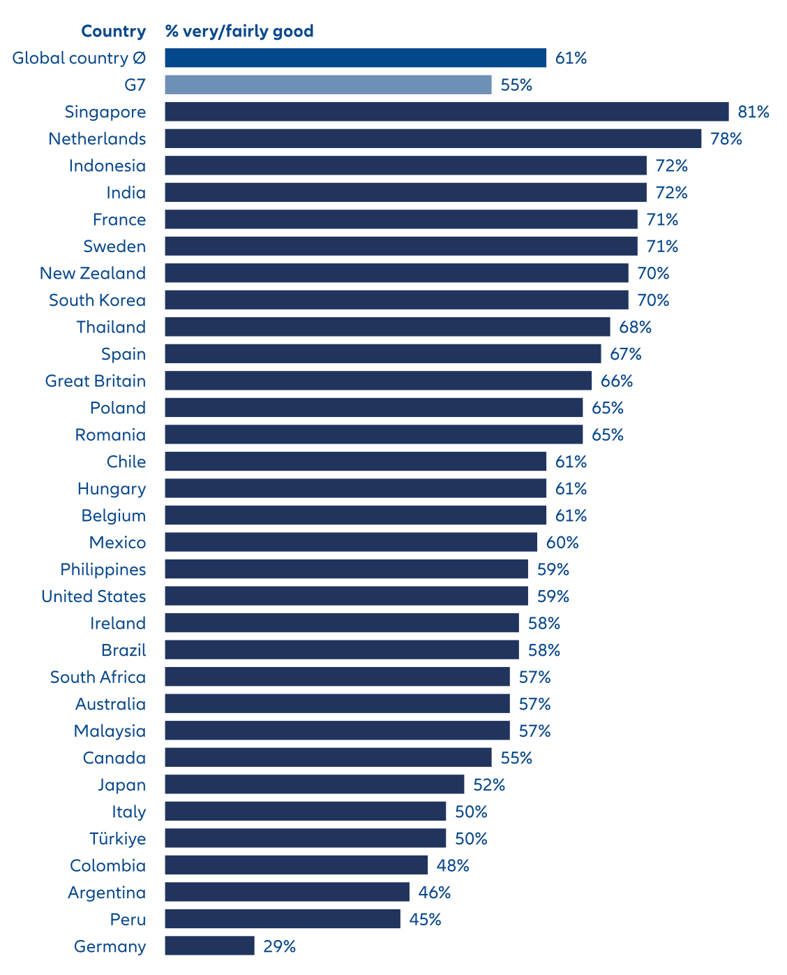However, according to a study by GIIA, only 55% of respondents in the G7 countries consider the quality of digital infrastructure in terms of 5G and fibre optic internet in their country to be very good or at least fairly good (see Exhibit 1).