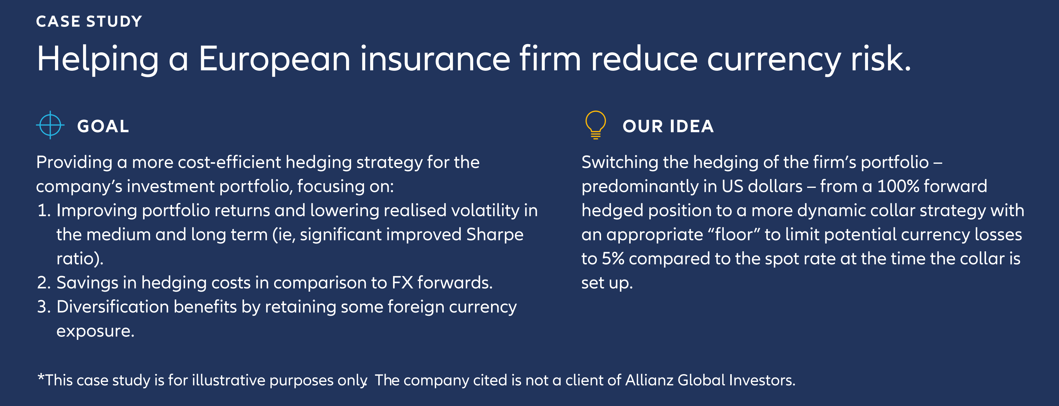 In general, for longer-term investors, we think option strategies may be the smartest solution: they help to reduce risk and costs more effectively and efficiently than forwards. This can mean a significantly improved Sharpe ratio, a measure of volatility-adjusted returns.